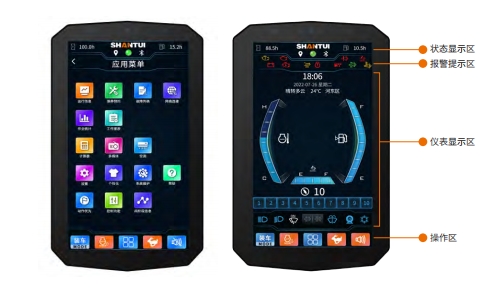 10.1英寸触摸屏,全贴合IPS屏,宽视角,高亮度,阳光下可视,集成智能显示、交互与控制功能,机器运行数据一目了然;夜视广角摄像头实现全方位监控,一键启动与合理布局的操纵装置,让操作更便捷安全,兼顾效率与人文关怀。