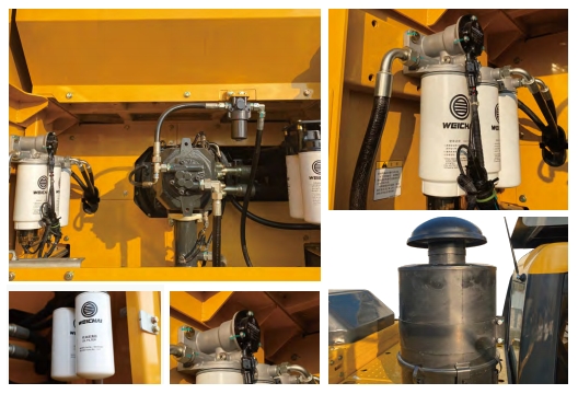 在维保方面SE390LC同样展现出实用主义的“内功”,旨在持续降低用户的运营成本。其配置的油浴式空滤过滤效率高达99.9%,无惧粉尘环境;大容量多级过滤系统,有效延长核心部件寿命;引出式机油滤芯,保养周期长达500h;机油、燃油、空气滤清器及油水分离器触手可及,大大节省维修时间与成本。