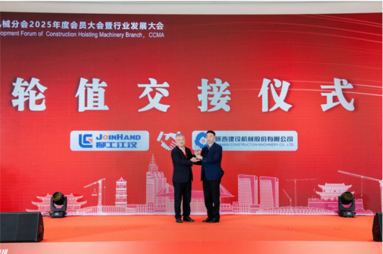 经理事会审议通过,2026年建筑起重机械分会轮值副会长单位为陕西建设机械股份有限公司,年会上还举行了轮值交接仪式。喻乐康向陕西建机公司代表柴昭一副董事长进行了交接。柴昭一表示将全力做好轮值工作,并向全体代表发出隆重邀请。