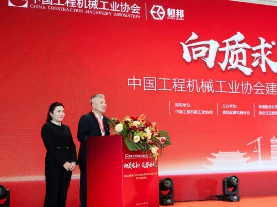 协会秘书长吴培国、监事严建国,建筑起重机械分会会长喻乐康、顾问吴恩宁、秘书长周平,分会副会长单位代表:徐工集团徐州建机工程机械有限公司副总经理王治国,马尼托瓦克起重设备有限公司产品经理吕卫东,大汉科技股份有限公司副总经理张永锋,抚顺永茂建筑机械有限公司董事长田若南,北京建筑机械化研究院有限公司总工程师罗文龙,四川建设机械(集团)股份有限公司总经理漆勇,沈阳三洋建筑机械有限公司常务副总经理李国威,陕西建设机械股份有限公司副董事长柴昭一,方圆集团有限公司总经理刘长城,浙江省建设机械集团有限公司副总经理李维波,广西建工集团建筑机械制造有限责任公司总经理助理、副总工程师黄家瞻,山西建设投资集团有限公司副总经理、山西省工程机械有限公司党委书记、董事长张作鹏,浙江虎霸建设机械有限公司总经理丁雄飞,广州市特威工程机械有限公司总经理蒋锦富,江西江特电机有限公司副总经理卢天星以及协办单位恒邦科技董事长范俊红等领导出席会议。