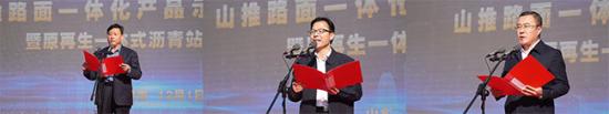仪式上,亓学富首先致辞,对山推在科技创新与产业赋能方面给予充分肯定,提出为地方企业发展和节能环保方面提供坚强保障,同时推动了济南装备制造产业链转型升级。陈茂金书记致辞中表达颜庄街道对山推发展的坚定支持,期许企业在创新道路上稳步迈进。作为山推重要合作伙伴,客户董事长刘峰分享了双方携手同行的合作历程,表达了对山推装备的信任与认可,表示将与山推携手积极做好山推路面一体化示范基地建设。