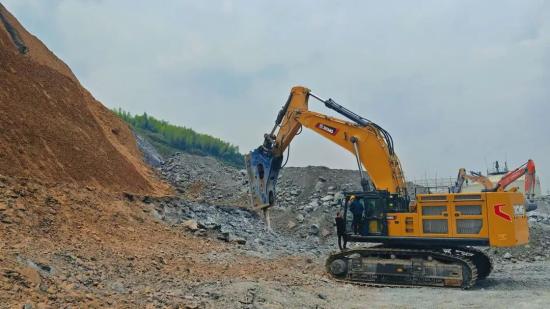 徐工XE900G Pro矿用挖掘机集成领先的“动力、节能、智能”技术于一体,能够完美适配各类破碎锤,高度契合砂石矿非爆破开采的工艺要求。在绿色矿山与“双碳”目标推进的背景下,其以技术革新驱动矿山机械向高效、低碳升级,引领行业迈入绿色发展新纪元。