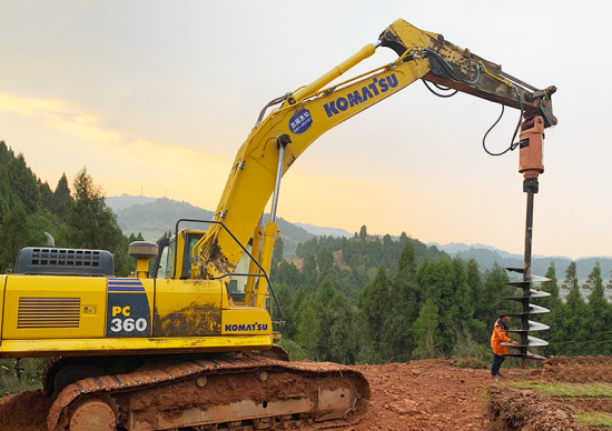 挖机改装螺旋钻的核心在于利用挖掘机原有的液压系统为动力源,通过加装螺旋钻具实现钻孔功能。挖掘机本身具有移动灵活、动力强劲的特点,其液压系统可提供稳定的旋转力和下压力,这为螺旋钻作业提供了理想的基础平台。螺旋钻的工作原理是通过钻杆的旋转带动螺旋叶片,将土层切削并沿螺旋面向上输送,从而实现快速钻孔。这种改装充分利用了挖掘机的多功能特性,通过简单的属具更换就能实现从挖掘到钻孔的功能转换,大大提高了设备的利用率和经济性。