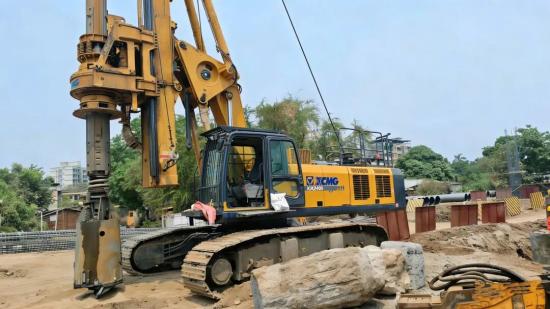 粘土裹砂、砂含硬岩,设备“全面性”是施工效率的关键。徐工XR240旋挖钻机精准匹配本地施工需求:粘土层中,优化的液压系统与钻具实现高效甩土,避免工期延误;碎石与中风化硬地层,产品配置了加强型钻杆和地层自适应功能,使得设备更加耐用、机手操作容易,人机和一,工作效率显著提升。
