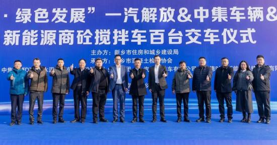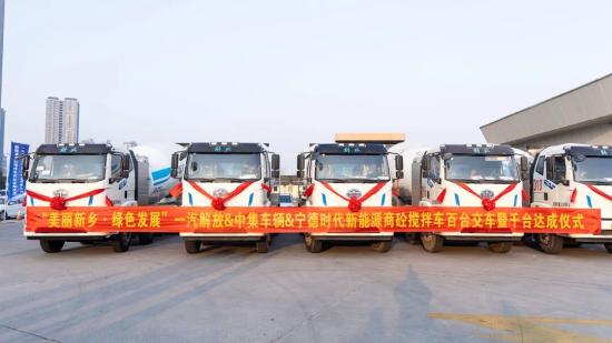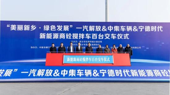 12月11日,“美丽新乡·绿色发展”一汽解放&中集车辆&宁德时代新能源搅拌车百台交车暨千台达成仪式在河南新乡圆满落幕。本次活动由新乡市住房和城乡建设局主办,新乡市混凝土检测协会承办,中集车辆DTB搅拌车业务集团、一汽解放汽车有限公司、宁德时代新能源科技股份有限公司共同协办。