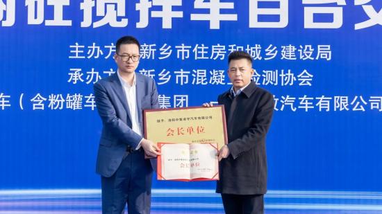 新乡市混凝土检测协会会长郎秉梓带来了以“选择信赖?共创价值——携手优质伙伴推动行业升级”为主题的分享。并现场授予洛阳中集凌宇汽车有限公司“新乡市混凝土检测协会会长单位“。