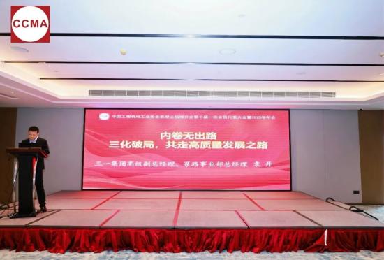 三一集团高级副总经理、泵路事业部总经理袁丹作《内卷无出路,三化破局,共走高质量发展之路》主题报告