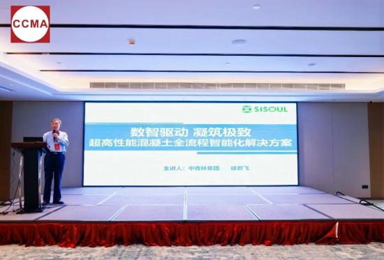 青岛新型建设机械有限公司副董事长、协会专家委员会(混凝土机械分会)委员徐君飞作《数智驱动 凝筑极致——超高性能混凝土全流程智能化解决方案》主题报告