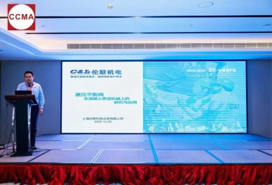 上海伦联产品经理陈智星作《液压平衡阀在混凝土泵送机械上的研究与应用》主题报告