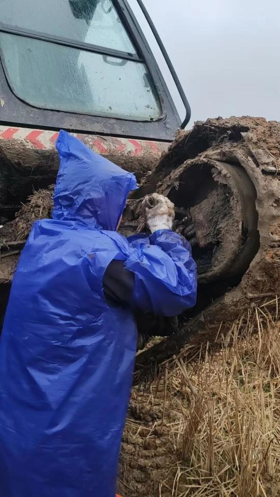 考验并未止步,施工点深藏农田腹地,车辆根本无法驶入,停车点与挖机停驻处,隔着整整1公里的雪野。