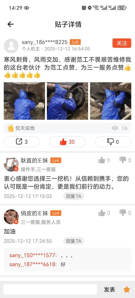 看着重新运转的设备,张总紧绷的神经终于放松,感动不已的他当即发帖,为三一服务的硬核实力与暖心担当点赞。