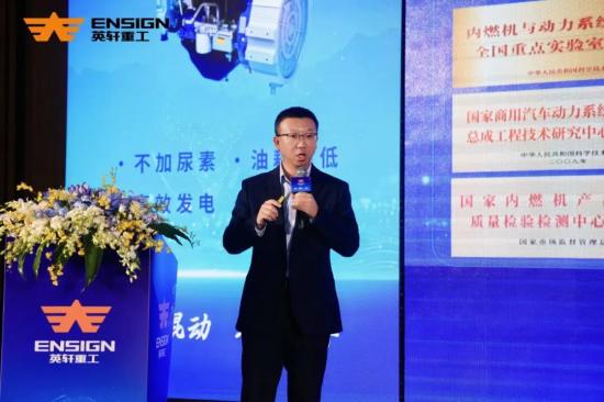 在品牌文化及产品介绍环节,英轩重工装载机营销公司副总经理段敬选与潍柴新能源研究院院长祝成祥均凸显“以客户需求为中心”的核心理念。英轩重工已构建起覆盖“纯电动+混合动力”双技术路线的新能源全系列产品布局,两者优势互补、全面匹配煤炭、铁粉、砂石、矿山、港口等多元化场景需求;潍柴动力则凭借CTB电池与增程器等核心技术,实现装备全生命周期碳排放降低,助力运营成本显著下降,全方位提升客户价值。