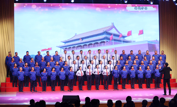 演出第二阶段,由后勤党支部、建设机械二厂、金属加工公司、起重机械厂、建材机械有限公司、环保科技有限公司与钢材市场公司、金属制品公司与铸造厂、电气有限公司、新产业党支部等九支代表队带来大合唱比赛,合唱团队激情演唱《团结就是力量》《中国军魂+不可阻挡》《我和我的祖国》《光荣与梦想》《我们从古田再出发》《战歌为胜利唱响》《走向复兴》《一切为打赢》《强军有我》等歌曲,歌声嘹亮绽放,节奏明快,激情飞扬,唱出方圆职工的精神风貌和昂扬斗志。