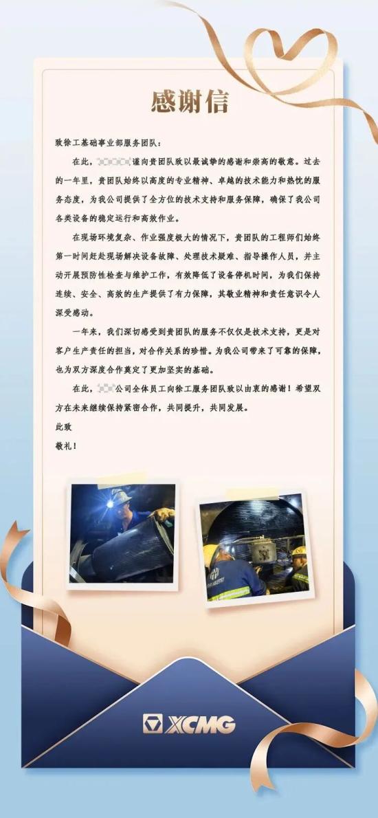 来自赞比亚的客户在感谢信中写道:“贵团队始终以高度的专业精神、卓越的技术能力和热忱的服务态度,为我公司提供了全方位的技术支持和服务保障……”这份赞誉,正是对徐工全生命周期服务的高度认可与充分肯定。