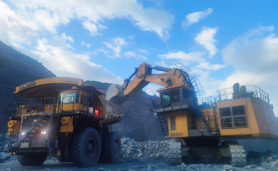 矿山作业高温高湿,对设备的可靠性提出更高要求。徐工XE3000展现出令人信赖的耐久性与出勤稳定性,其关键液压元件(泵、阀、马达及减速机)均选用世界一流高端品牌,可靠性更强;底盘、回转平台、工作装置等核心结构件采用等强度优化设计,实现了应力分布的优化与结构耐久性的全面提升。XE3000矿用挖掘机通过系统设计到细节保障的迭代更新,推动设备运行更长效可靠,实现综合出勤率90%以上,已成为当地矿山连续高效开采的中坚力量。