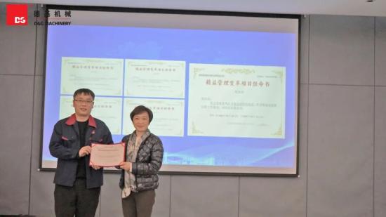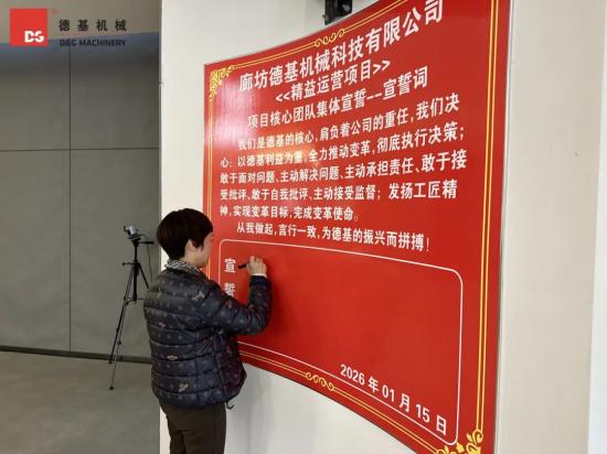 变革之路,知易行难。它不仅需要清晰的蓝图,更需要坚定的执行者和责任担当者。为此,大会举行了重要的项目负责人任命环节并庄严宣誓。德基机械董事长蔡群力女士向被正式任命的精益管理变革项目负责人颁发了聘书。这一纸任命,承载的是沉甸甸的责任与公司的殷切期望。各位负责人依次接过聘书,他们的眼神中透露出使命必达的坚定。全体负责人郑重承诺,将率领团队,以空杯心态学习精益精髓,以攻坚克难的勇气直面痛点,以科学严谨的方法推动改善,确保项目每一步都扎实落地,每一项成果都经得起检验。