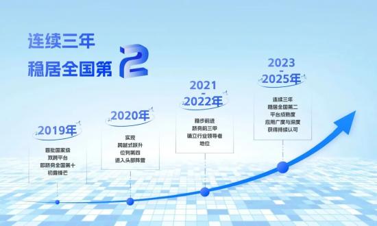 近日,工业和信息化部发布2025年“双跨”平台名单,徐工汉云连续第七年入选,并获评最高等级A级,稳居全国前二。自2019年工业和信息化部首次开展“双跨”平台遴选,徐工汉云勾勒出一条稳健向上的发展曲线,已连续三年保持全国第二位。