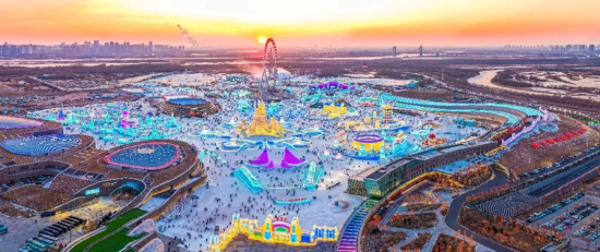 本届冰雪大世界园区面积达120万平方米,总用冰用雪量突破40万立方米,为历届规模之最。