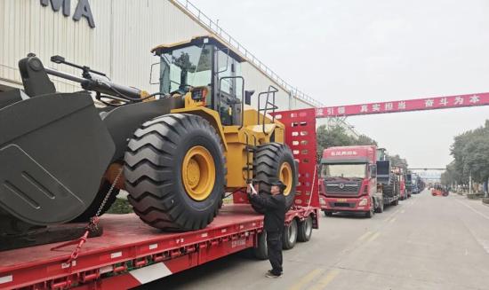 厂区内,一排排全新K系列装载机整齐列队,排成长龙,宛如蓄势待发的“钢铁骏马”。伴随着清脆的鸣笛声,这批承载着品质与信赖的设备缓缓启程,即将快马加鞭奔赴浙江、广东、山西、四川、吉林、山东等全国多个省份,扎根基建、矿山、农林等一线战场,以强悍性能助力客户抢抓新春生产黄金期,开启红红火火的新一年。