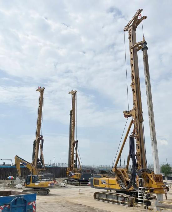 徐工三款旋挖钻机精准破解现场难题,面对滨海砂层、卵石层交错的实际地质条件,依托动力控制系统精准发力: