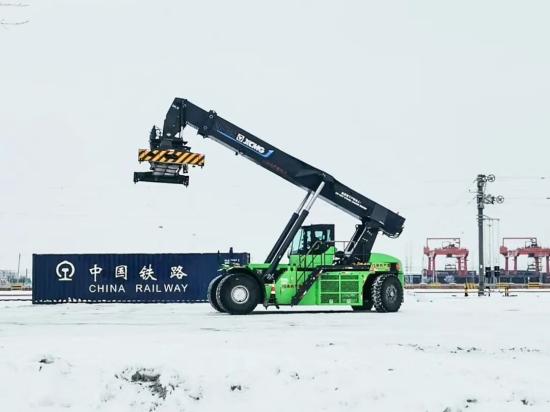 徐工纯电动正面吊创新应用全域智能温控平台,通过电池包智能检测与液压系统低温自适应策略,即使在-40℃以下的严寒环境中,仍能保持动力系统高效输出。