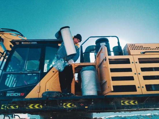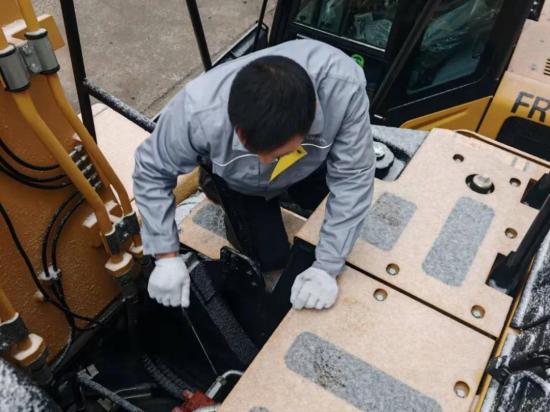 您的信任,我们从未“冻”摇。零下25℃的严寒裹挟着小雪,客户的一台FR215F挖掘机已运行3500小时,亟待保养。王师傅如约而至,在冰天雪地中,不仅一丝不苟地完成了全套保养,更主动为设备进行了一次全面的“体检式”整机检查。风雪冻僵了手指,却冻不住雷沃服务的标准与热忱。客户感叹:“这天气还这么细致,太让人放心了!”