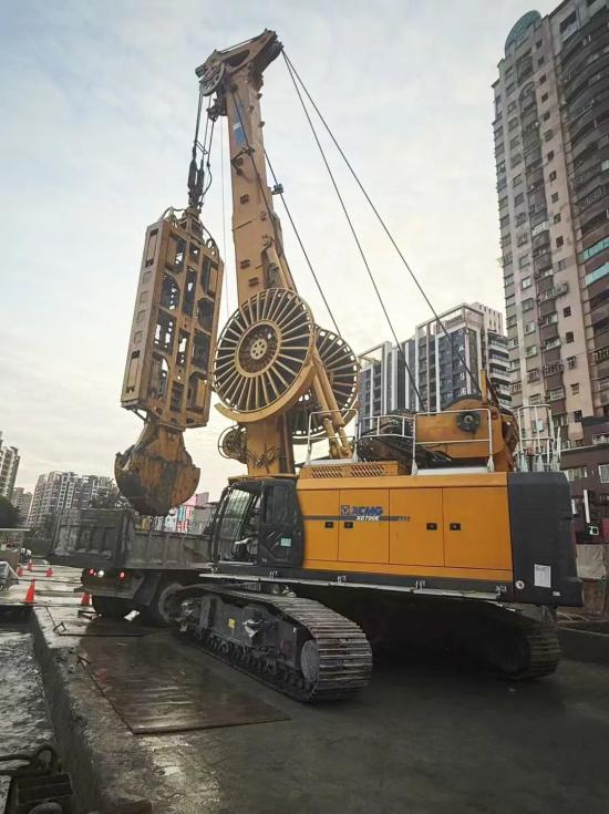 在东南亚施工现场,徐工XG700E地下连续墙液压抓斗,攻克复杂地层障碍、破解成槽效率瓶颈,保障项目施工进度的有序推进。