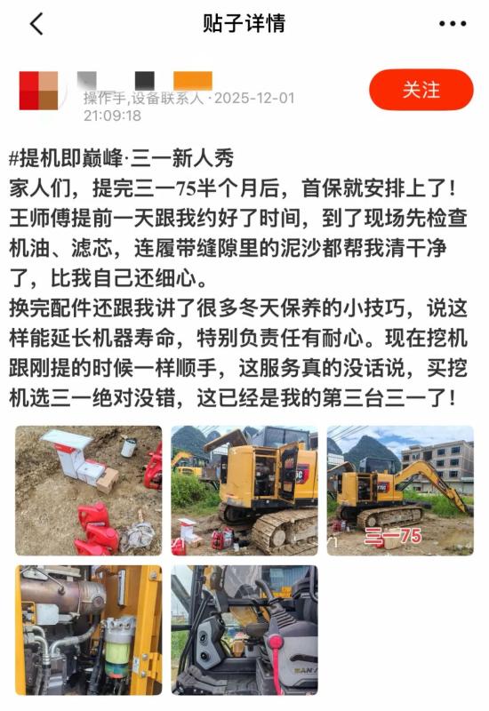 三一服务,不仅是一句承诺。“5231”快速响应与覆盖全国的服务网络,是您高效施工的坚实后盾。而真正的口碑,来自用户的真实体验。