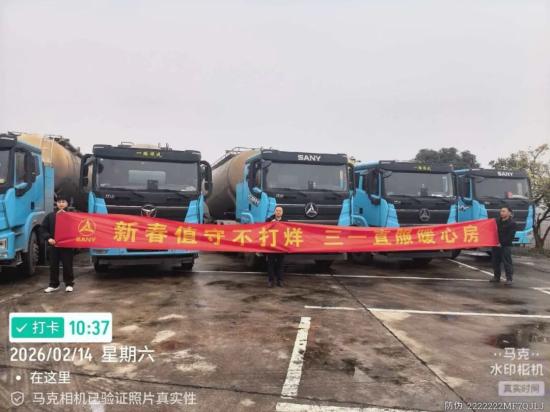 直服无休,春节无忧。三一电动重卡秉持行业独家直服模式,以“驻场驻点+24小时待命+随时服务”为工作信条,“坚持工作不断档,坚守岗位不松懈”,为客户运营致富筑牢坚实保障。
