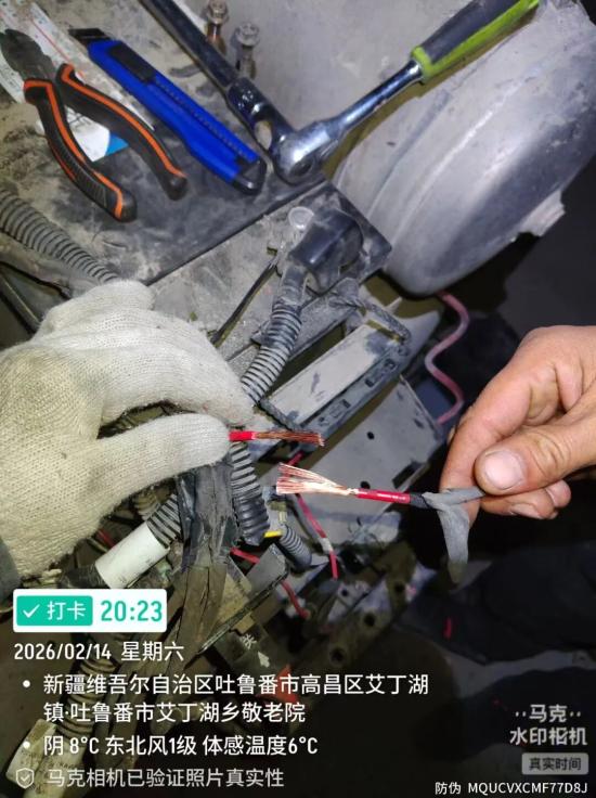 直服工程师不顾极寒肆虐,即刻启程奔赴现场,抵达后争分夺秒排查故障,手指冻得僵硬发麻,却始终专注操作、毫不懈怠。全程兼顾客户安全,先将司机平安送回家中,再有序完成后续检测修复工作,于15日18时30分彻底完工。