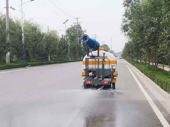主要由发动机带动变速箱,变速箱上安装的取力器带动洒水泵,洒水泵产生动力,将罐体内部的液体通过管网喷洒出去。工作范围:自吸高度:≤7m,洒水宽度:≥14m,zui大射程:≥28m;可调节成柱状,射程≥28m;也可调节成雾状,射程≥15m。
